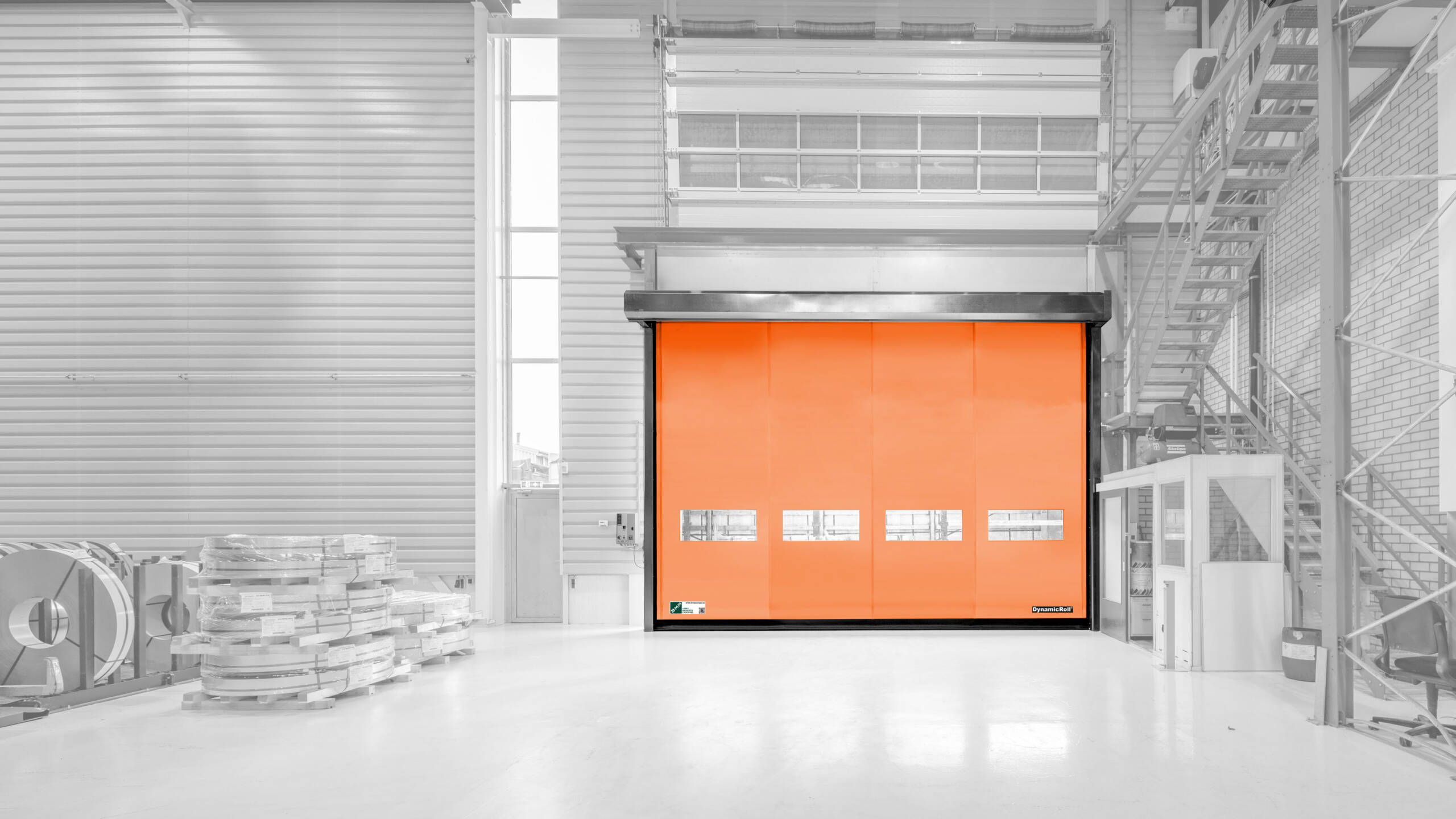 Le porte rapide garantiscono tempi di apertura fino a 2,5 m/s, ideali per varchi ad alto traffico e flussi di lavoro intensi. Compatte e senza guide a terra, si adattano anche ad ambienti con vincoli strutturali.